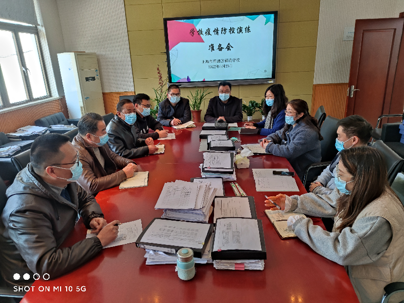 演练开始前,学校先在会议室召开了疫情防控演练的准备会,会上由学校疫情防控领导小组组长陈建军校长向小组成员介绍本次防控演练的目的、流程,以及各自的工作职责。然后依照新修订的学校疫情防控演练方案分场景进行真实演练,并着重强化了校门口的两次测温及出现核酸检测异常、密切接触者等情况的应急处置流程。
