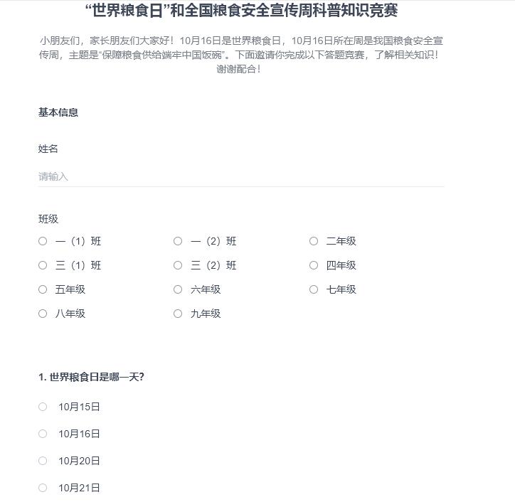在此次活动中,我校学生积极践行光盘行动,以自己的实际行动珍惜每一粒粮食;在学校“课值春早”种植原地,中高段学生在班主任老师的带领下,来到田间地头,用心管理菜地,除草施肥,体验农活的辛苦;为扩大宣传面,我校还组织了“世界粮食日”和全国粮食安全宣传周科普知识竞赛,最终吴浩铭、吴浩然、徐迦勒、苏晓豪分获低、中、高段一等奖。