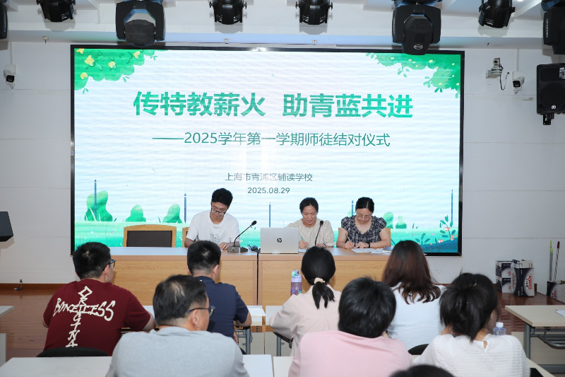 2025 年 8 月 29 日,青浦区辅读学校成功举办了主题为 “传特教薪火 助青蓝共进” 的新青年师徒结对仪式,为新学期的教育教学工作拉开了帷幕。
