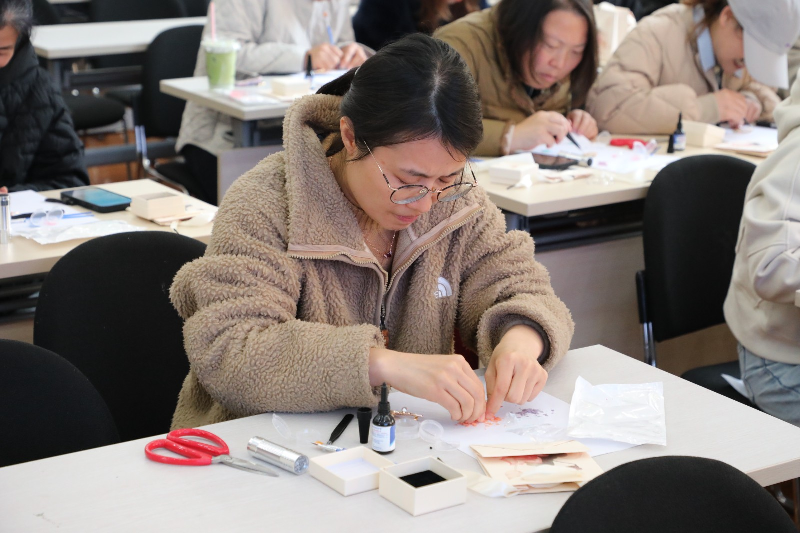 此次妇女节非遗螺钿胸针制作活动,既是一次温馨的节日献礼,也是一场生动的文化传承课堂。不仅让女教师们在动手实践中释放压力、愉悦身心,感受到工会大家庭的温暖关怀,更让大家近距离领略了非遗技艺的独特魅力,厚植文化自信。