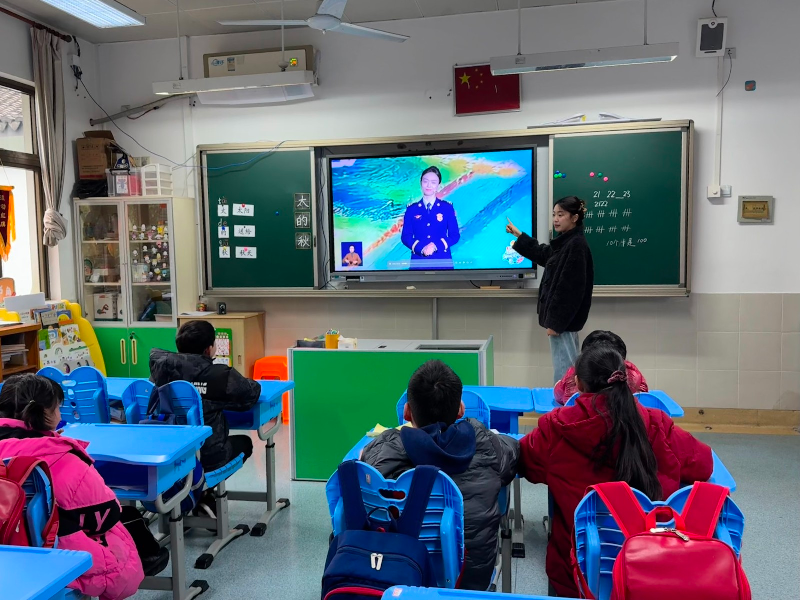 各班班主任带领学生回到教室后,还共同观看了《2026年春季全国中小学消防安全公开课》。公开课以《西游记》故事巧妙导入,将经典神话人物与消防安全知识相结合,生动阐述了火灾的危害性以及正确的应对方法,帮助学生们在理论与实践相结合的基础上,进一步巩固了消防安全知识。
